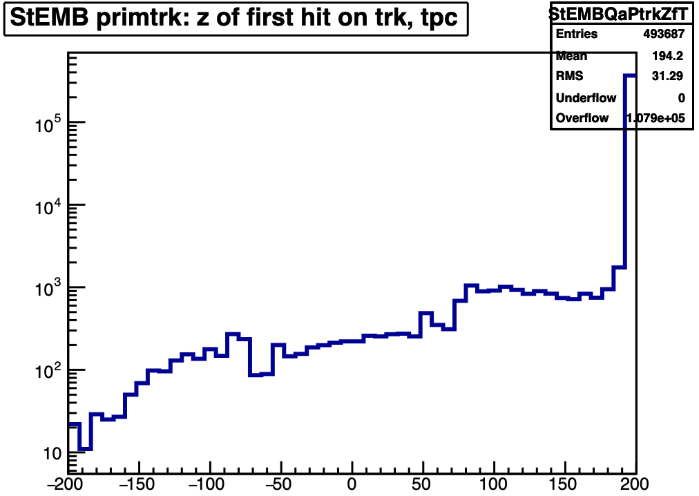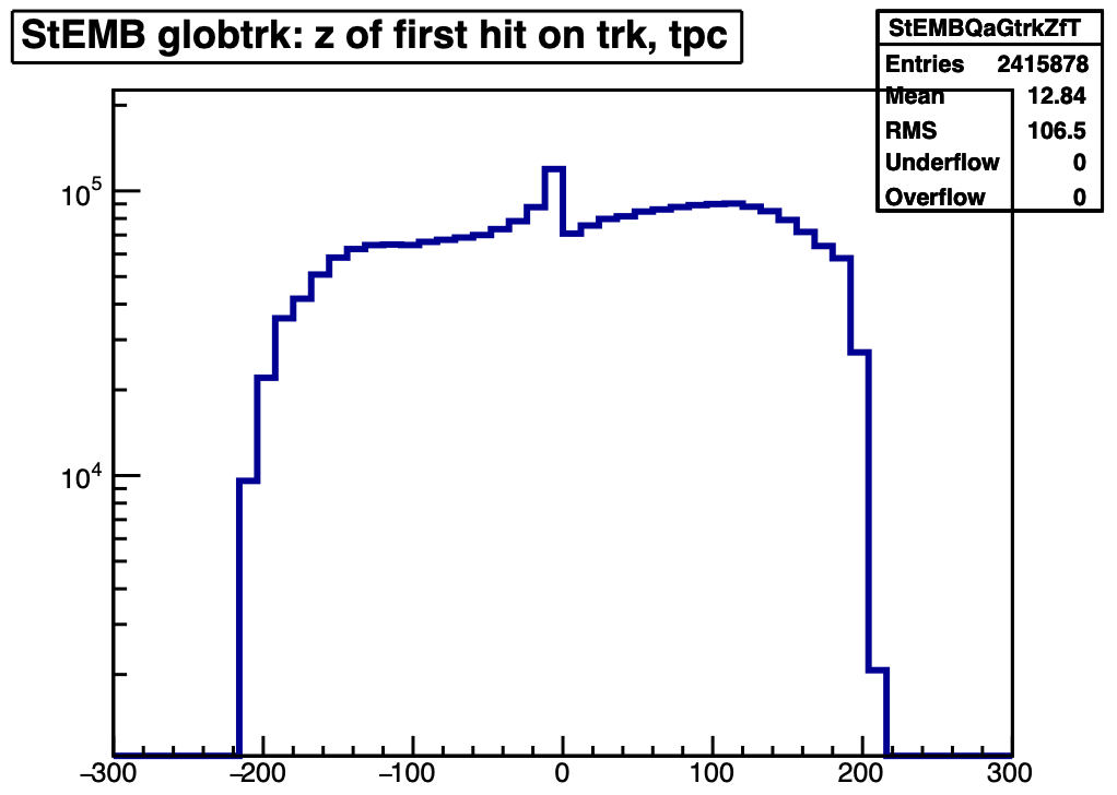 The attached plots seem to indicate that a notable fraction of global tracks start at the central membrane, but this seems to me reasonable given the pile-up tracks that must make up a large portion of the global tracks. The z of first hit on primary tracks is smooth across z=0, but for primary tracks, that z is the primary vertex position, so it's not really informative here.